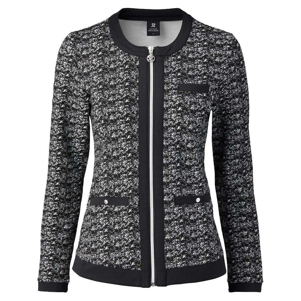 The Daily Sports Jill Golf Jacket is the fashionable way to keep warm during your round of golf or when you are out and about. It features a round neck, full zip closure, two front zip pockets, all-over print with black trim, and a regular fit.