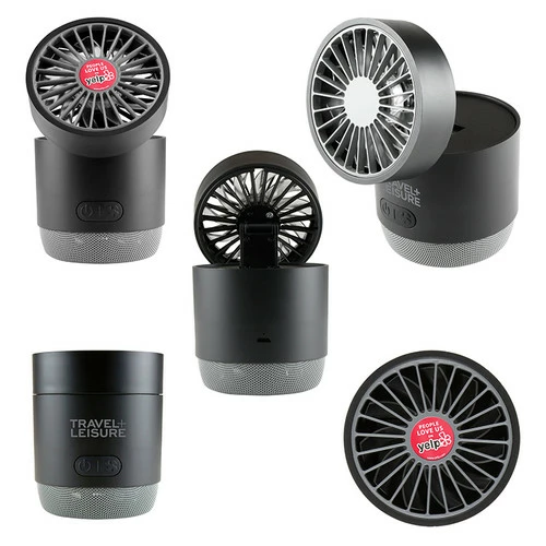 The Propel Wireless Speaker will not only play your favorite music, it will keep you cool with its built-in fan. The fan can rotate 180-degrees and has 3 speeds, operated by a single button. Compact and rechargeable, wirelessly connect to your smartphone, tablet, etc. Charge time: ~1-2 hours; playtime fan only: ~3 hours; playtime speaker only: ~8 hours; playtime speaker and fan: ~2 hours. Micro USB charging cable included.